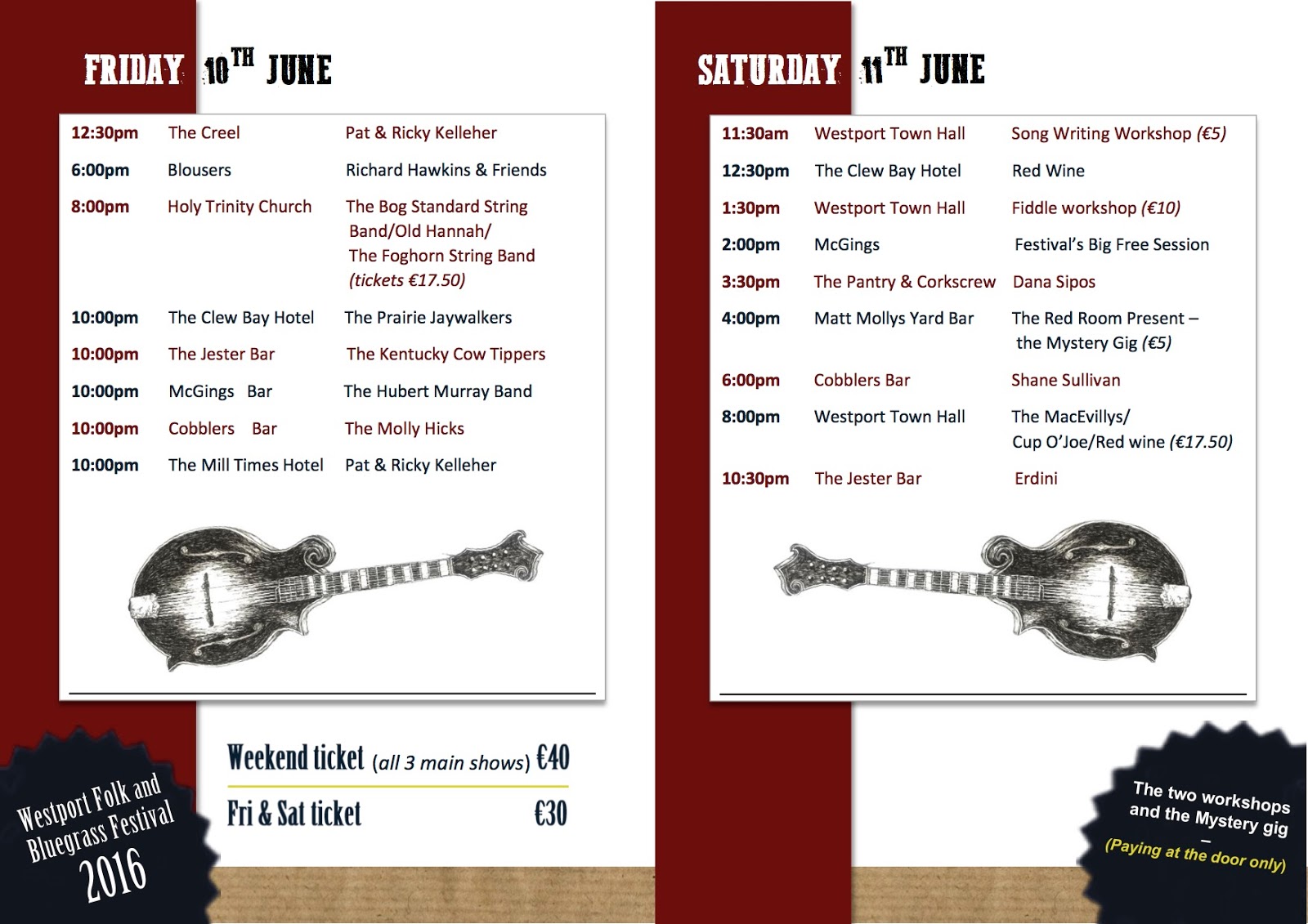 Fri. 10th: Westport Folk and Bluegrass Festival, Westport, Co. Mayo