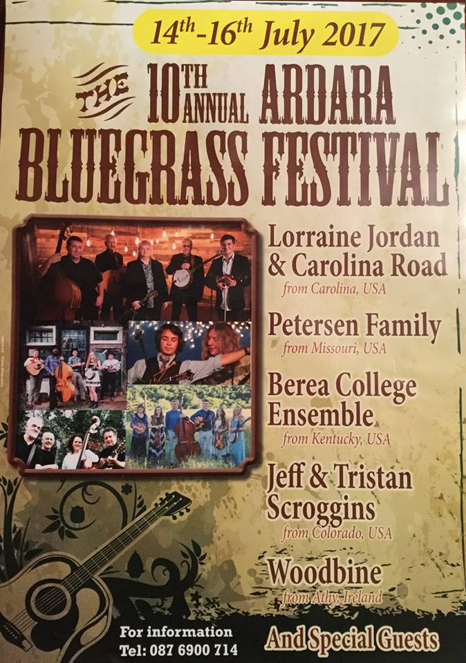 Fri. 14th-Sun. 16th: The Ardara Bluegrass Festival, Ardara, Co. Donegal: The Petersens, The Berea College Bluegrass Ensemble, and Jeff and Tristan Scroggins (various times). Also appearing will be Lorraine Jordan and Carolina Road, Woodbine, and Colin Henry and Janet Holmes. This should be a superb festival with loads of picking. Tel. 087 690 0714
