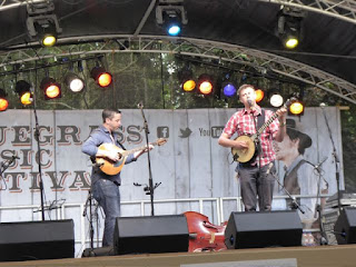 This is a very belated, fragmentary, and inadequate indication of how enjoyable this year's 26th Bluegrass Music Festival was at the Ulster American Folk Park, Omagh, Co. Tyrone, just over a month ago. We may longingly recall the years when Pinecone would ship in bands and clogging teams from North Carolina; when the main marquee and the beer tent had video screens giving at least as good a view of the stage as one got from a concert seat; and when... (fill in your personal memory here). But it's important to recognise what a tremendous job Richard Hurst and his team are doing within the limits set by National Museums Northern Ireland. Thanks again to Richard, Patrick, and all the staff at the Park.