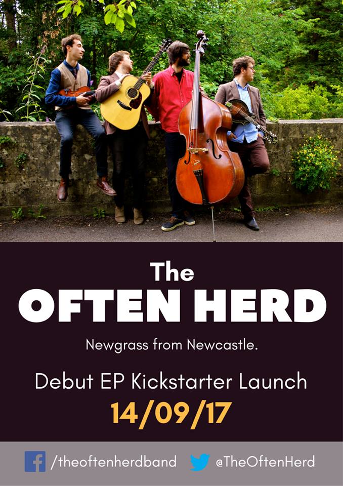 Thanks to Sam Quintana of the bluegrass four-piece The Often Herd, based in Newcastle (UK), for this news.The Herd (Rupert Hughes, guitar, vocals; Evan Davies, mandolin, vocals; Niles Krieger, fiddle, vocals; and Sam Quintana, bass) previously performed under the name 'The Kentucky Cow Tippers', and in June 2015 they toured Ireland performing at venues including the Red Room in Cookstown, the Cowboys and Heroes Festival in Drumcora, and the Westport Folk and Bluegrass Festival. Sam now writes: